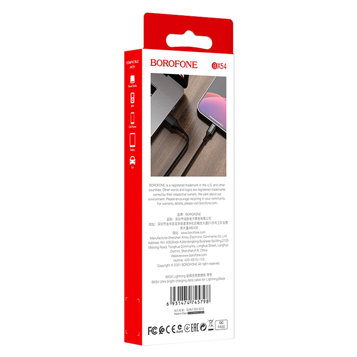 Дата-кабель BOROFONE BX54 Ultra bright Lightning, 1м (чёрный)