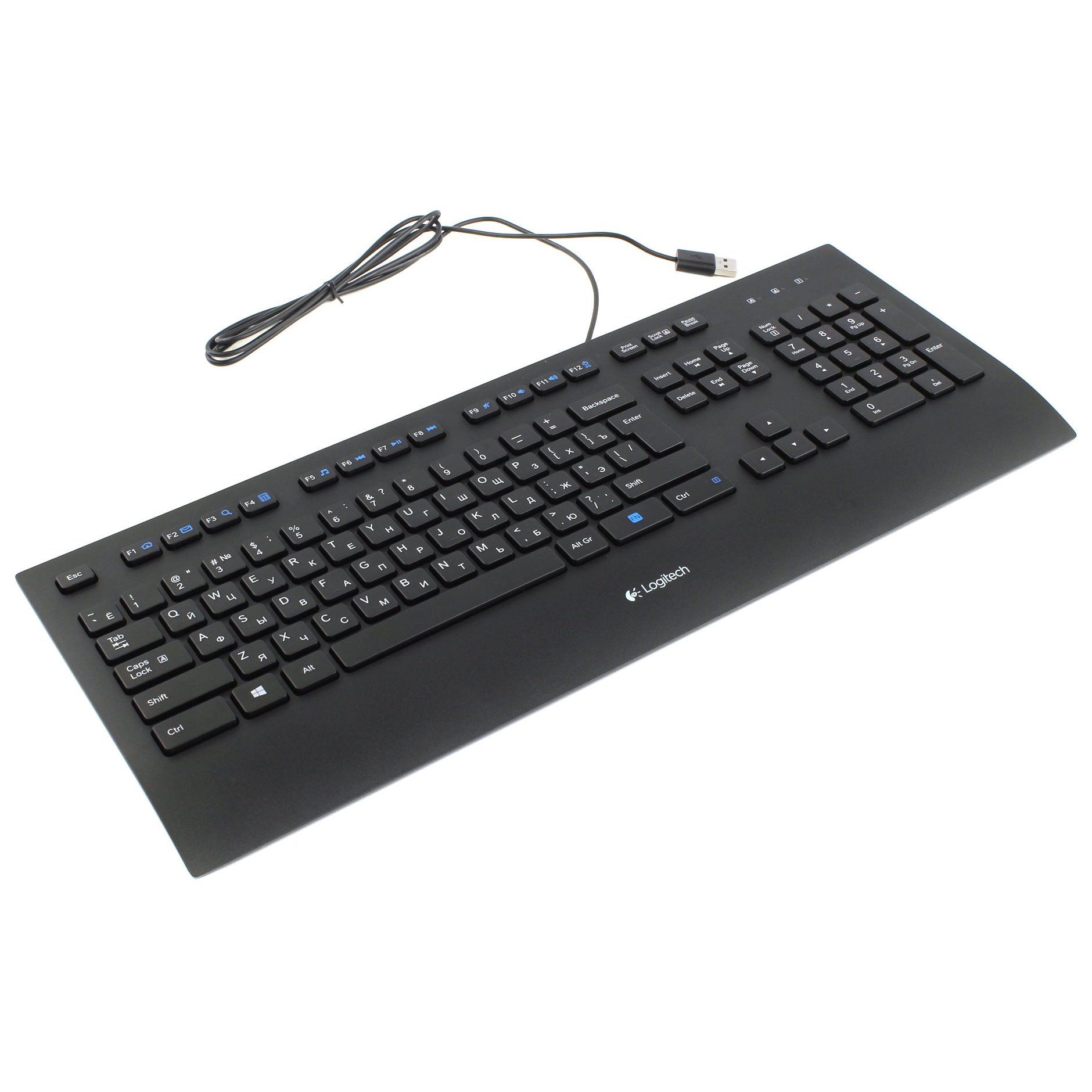 Специально разработанная конструкция клавиатуры Logitech K280E обеспечивает дополнительную прочность. Водостойкая. Не требует установки программного обеспечения.