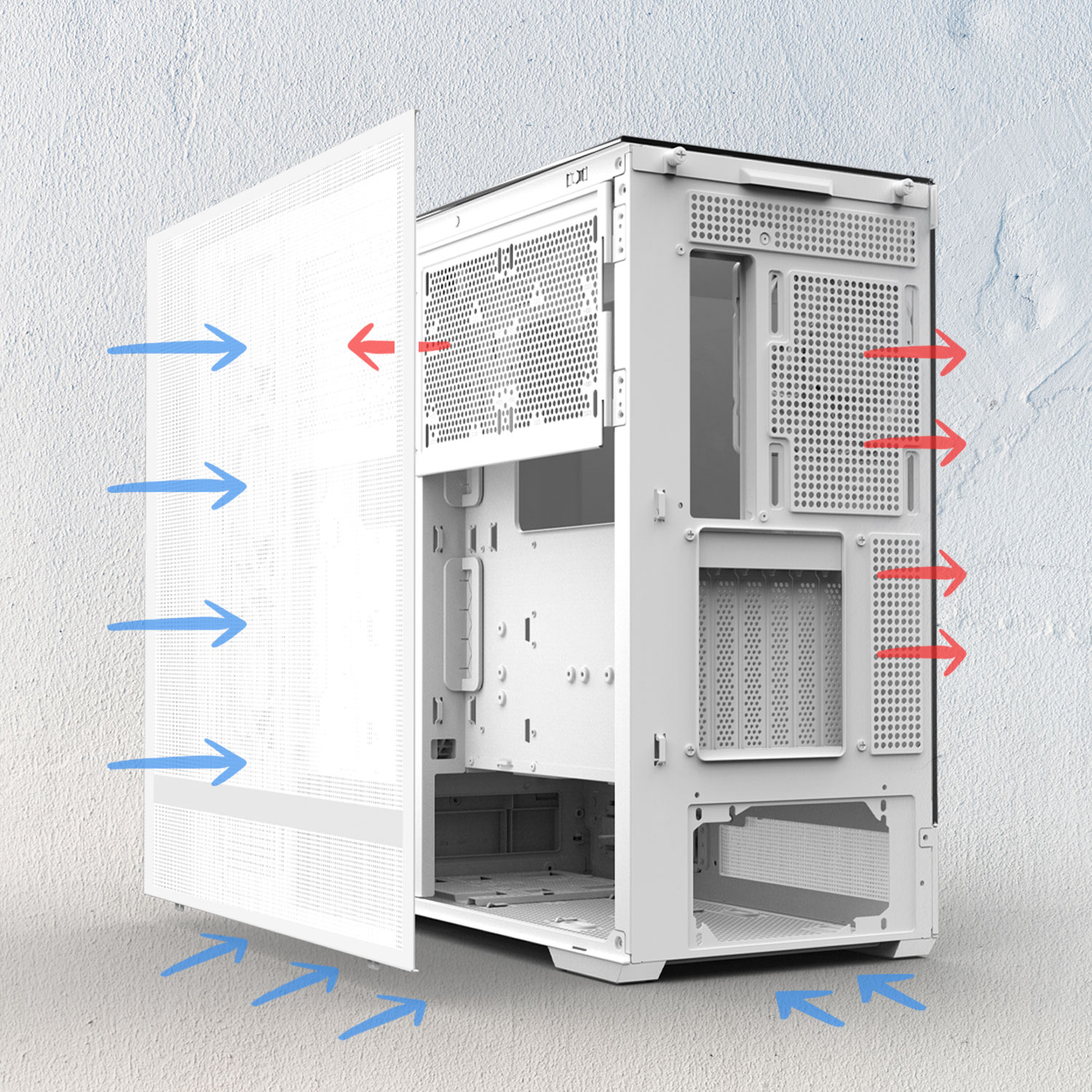 • Поддержка нижних вентиляторов: 3 x 120 мм